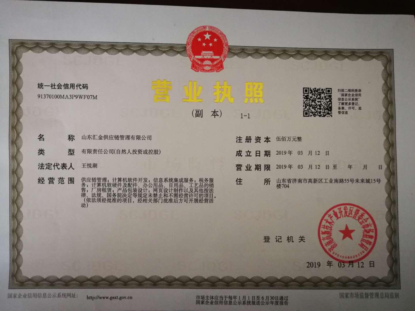 山东汇金供应链管理有限公司是一家专业从事互联网信息服务、电子商务和企业应用软件开发的综合性服务企业,是国内垂直专业网站运营商,国内专业B2B电子商务企业。 山东汇金联合政府、上市公司、银行等优势资源,结合自身专业技术、多年的市场以及供应链管理经验,推出汇金供应链管理服务平台。 该平台通过为企业提供融资、销售、市场以及产业链上下游协同管理等服务,为企业与银行、市场、同行、产业上下游之间搭建了一座信息与沟通的“桥梁”,旨在帮助企业解决融资难、融资贵、产能过剩、应收账款赊欠、市场拓展等问题。 公司依托独特的服务模式、优良的服务品质、功能强大的信息系统以及敬业勤勉、善于创新的专业团队,秉承“汇聚资源,诚信为金”的发展理念,坚持高效、务实的工作原则,强化供应链技术的研发,为客户提供集信息流、资金流、物流于一体的供应链管理增值服务,致力于为国内外客户提高供应链管理效率、降低供应链使用成本而努力!